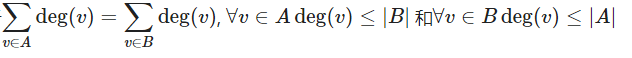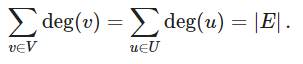 对于一个顶点,其相邻顶点的数量称为该顶点的度数,并表示为deg(v)。二分图的总度数和公式为: