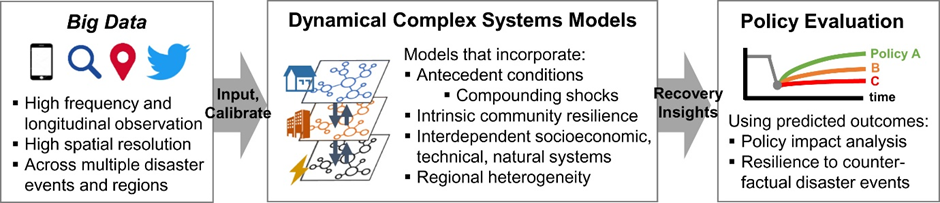通过充分利用动态复杂系统建模和大数据分析这两项最新科技,我们能够大幅推动灾后复原过程的建模,并衡量恢复的动态结果。与大数据分析方法相比,数据驱动的动态复杂系统建模方法有三个主要优势: