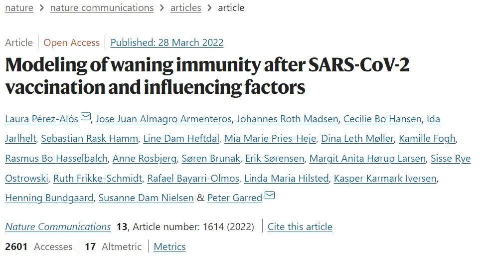 论文题目:Modeling of waning immunity after SARS-CoV-2 vaccination and influencing factors 论文来源:Nature Communications 论文链接:https://www.nature.com/articles/s41467-022-29225-4