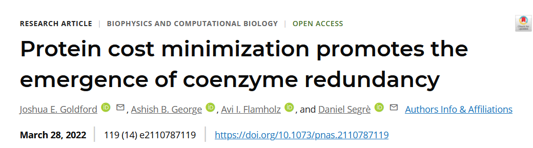论文题目:Protein cost minimization promotes the emergence of coenzyme redundancy 论文来源:PNAS 论文链接:https://www.pnas.org/doi/10.1073/pnas.2110787119