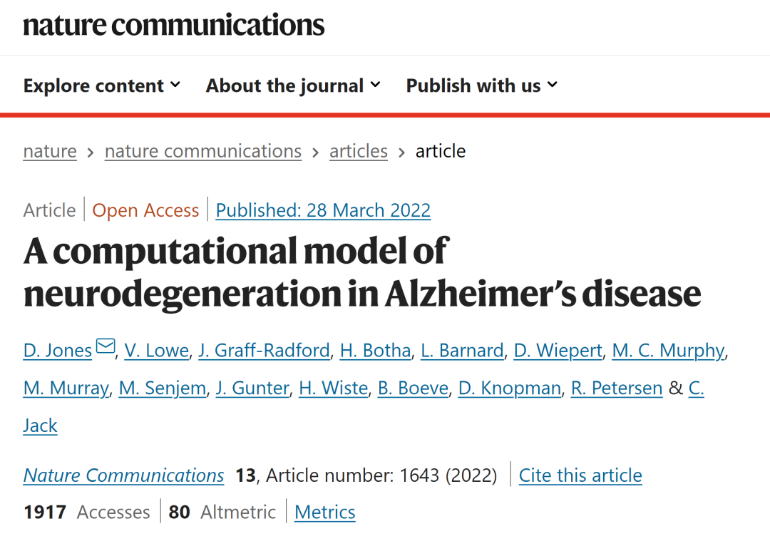 论文题目:A computational model of neurodegeneration in Alzheimer’s disease 论文来源:Nature Communications 论文链接:https://www.nature.com/articles/s41467-022-29047-4