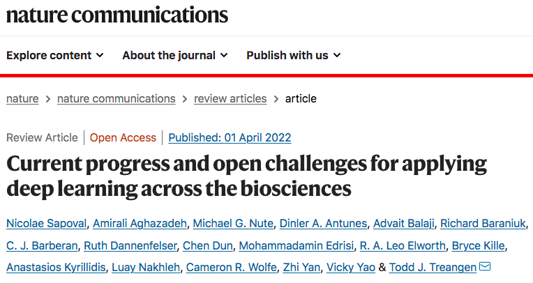 论文题目:Current progress and open challenges for applying deep learning across the biosciences 论文来源:Nature Communications 论文链接:https://www.nature.com/articles/s41467-022-29268-7