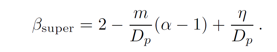 ,这表明个体间的平均距离随着城市规模的增大而减小。换句话说,正如实证研究表明的那样,大城市的人口密度比小城市要大。于是,可以估计出βsuper=7/6,βsup=5/6,与经验值相近。
