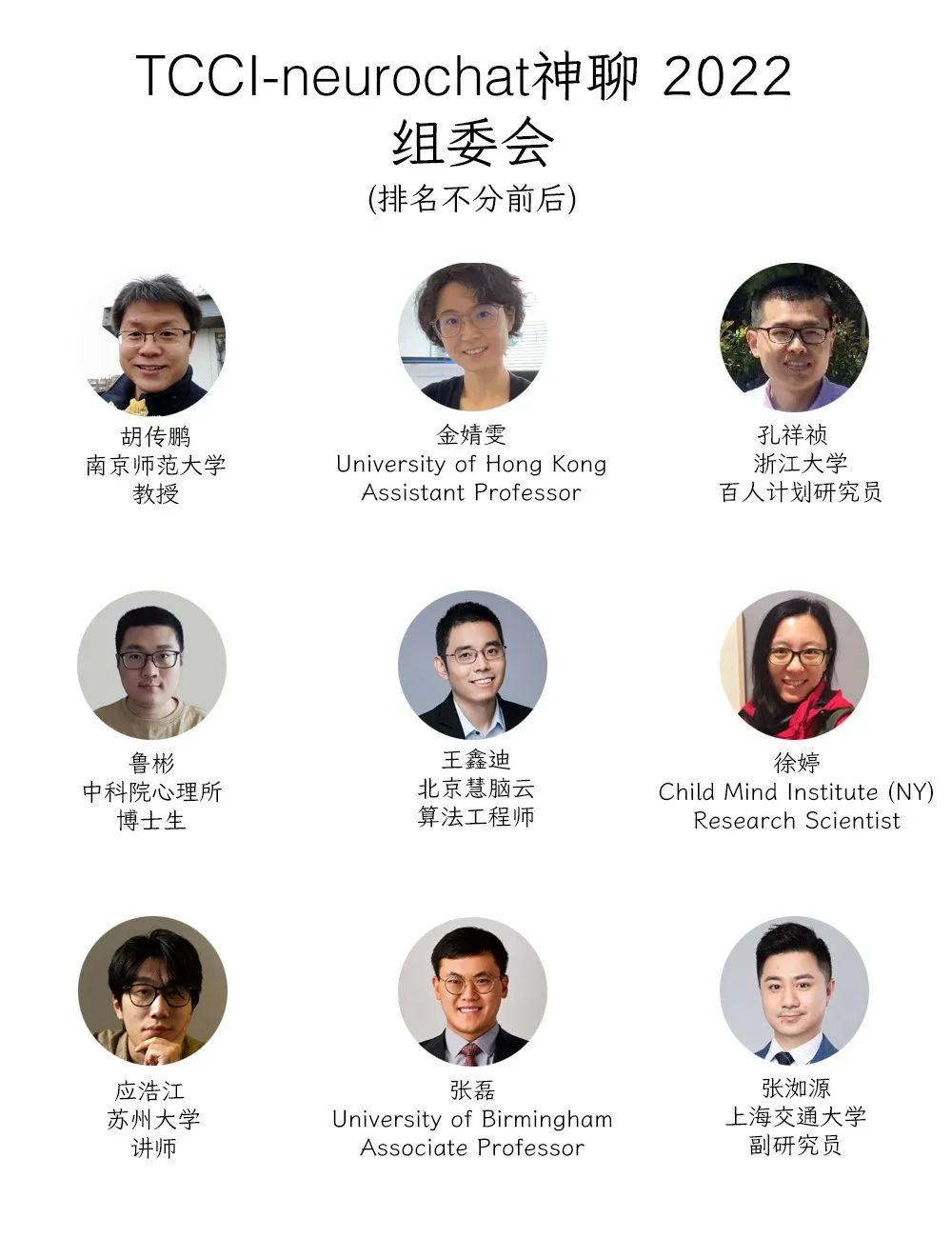 neurochat神聊组委会由遍布全球的多名青年学者组成。旨在促进华人认知神经青年科学家交流而建立。今年,TCCI-neurochat神聊 2022 组委会由以下9位青年学者组成: