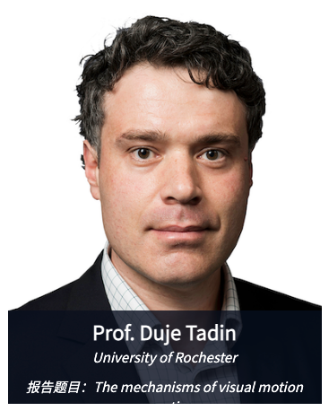 Duje Tadin 教授目前为罗切斯特大学(University of Rochester)Brain and Cognitive Sciences, Ophthalmology, Neuroscience, and Visual Science at the University of Rochester正教授,自2018年起担任Department of Brain and Cognitive Sciences 系主任(Chair)。他的科研成果发表在Nature, Nature Neuroscience, PNAS, 和 Nature Communications等顶级期刊。他因为在视觉领域的出色工作获得Elsevier/Vision Sciences Society Young Investigator Award(2014)和 Distinguished Alumnus Award from Vanderbilt University (2019)等诸多奖项。