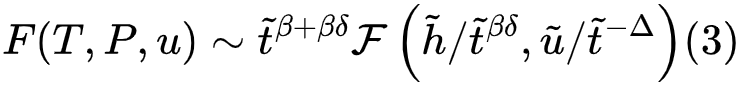 当我们有超过一个变量的缩放函数时,如方程3,尺度坍缩就不再有用。一个强大、令人满意、数值上方便的方法就是对数据 [6-8] 进行多参数拟合,不仅改变了参数如 β、δ、u、Tc、Pc、a、b、c 等,而且还改变缩放函数 F 的参数化函数形式。