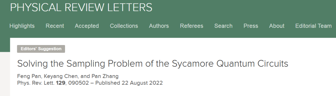 论文题目:Solving the Sampling Problem of the Sycamore Quantum Circuits 论文来源:Physical Review Letters 论文链接:https://journals.aps.org/prl/abstract/10.1103/PhysRevLett.129.090502