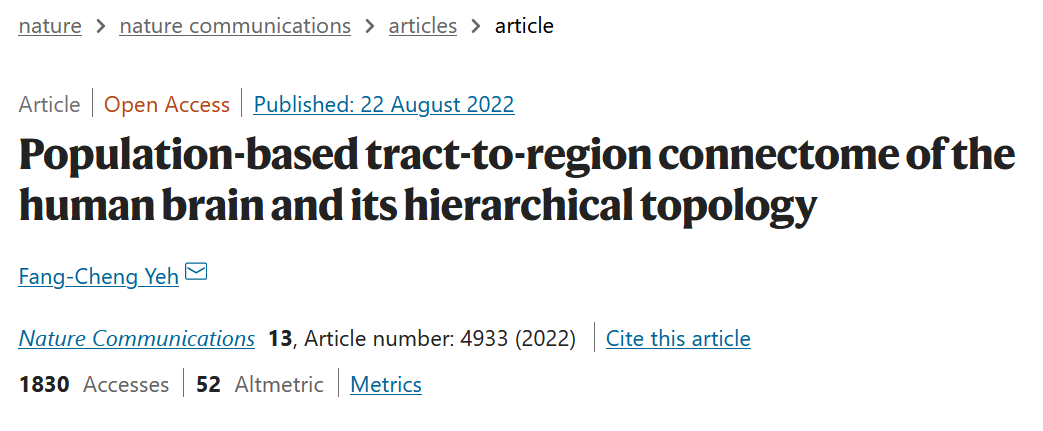 论文题目:Population-based tract-to-region connectome of the human brain and its hierarchical topology