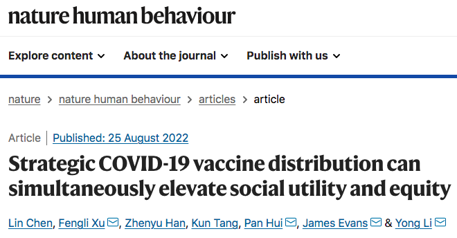 Nat. Hum. Behav.前沿:确保全球疫苗公平分配加速疫情终结 -