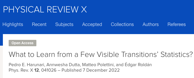 论文题目:What to Learn from a Few Visible Transitions’ Statistics? 论文来源:Physical Review X 论文链接:https://journals.aps.org/prx/abstract/10.1103/PhysRevX.12.041026