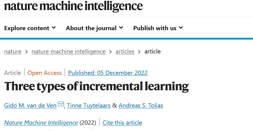 论文题目:Three types of incremental learning 论文来源:Nature Machine Intelligence 论文链接:https://www.nature.com/articles/s42256-022-00568-3