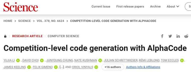 论文题目:Competition-level code generation with AlphaCode 论文来源:Science 论文链接:https://www.science.org/doi/10.1126/science.abq1158