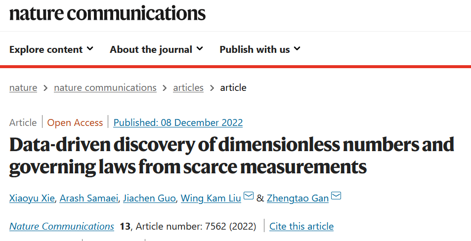 论文题目:Data-driven discovery of dimensionless numbers and governing laws from scarce measurements 论文来源:Nature Communications 论文链接:https://www.nature.com/articles/s41467-022-35084-w