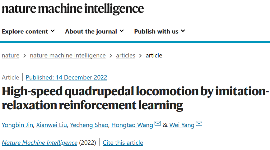 论文题目:High-speed quadrupedal locomotion by imitation-relaxation reinforcement learning 论文来源:Nature Machine Intelligence 论文链接:https://www.nature.com/articles/s42256-022-00576-3