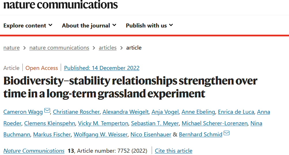 论文题目:Biodiversity–stability relationships strengthen over time in a long-term grassland experiment 论文来源:Nature Communications 论文链接:https://www.nature.com/articles/s41467-022-35189-2