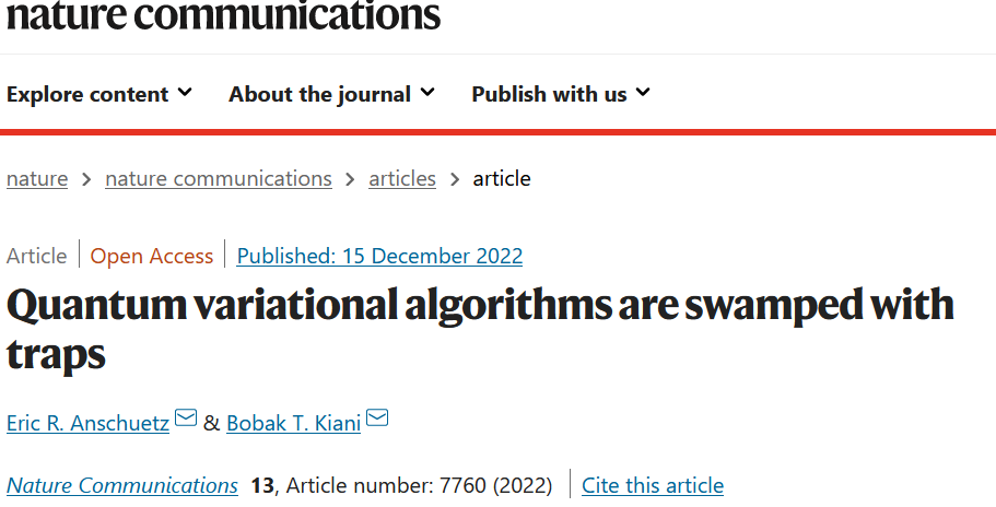 论文题目:Quantum variational algorithms are swamped with traps 论文来源:Nature Communications 论文链接:https://www.nature.com/articles/s41467-022-35364-5