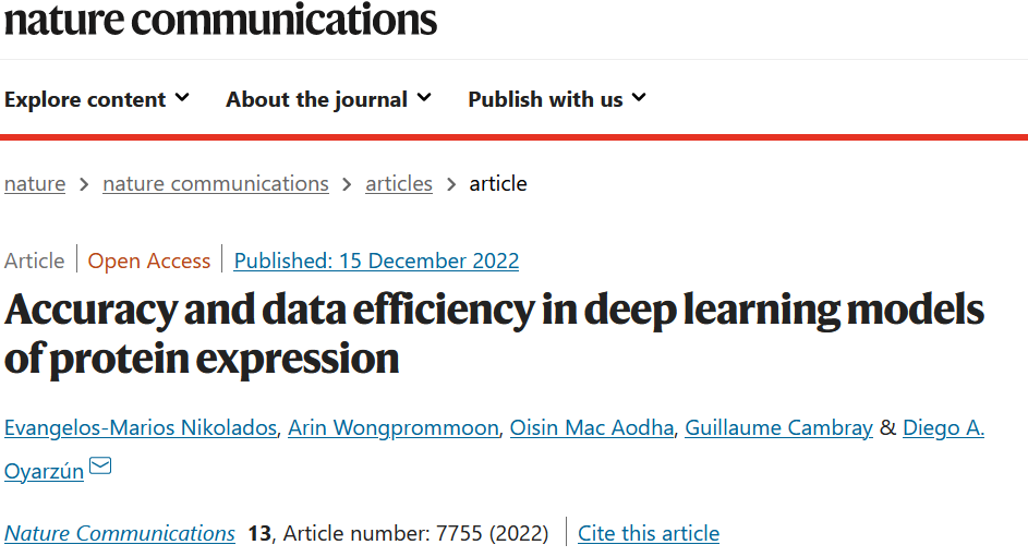 论文题目:Accuracy and data efficiency in deep learning models of protein expression 论文来源:Nature Communications 论文链接:https://www.nature.com/articles/s41467-022-34902-5