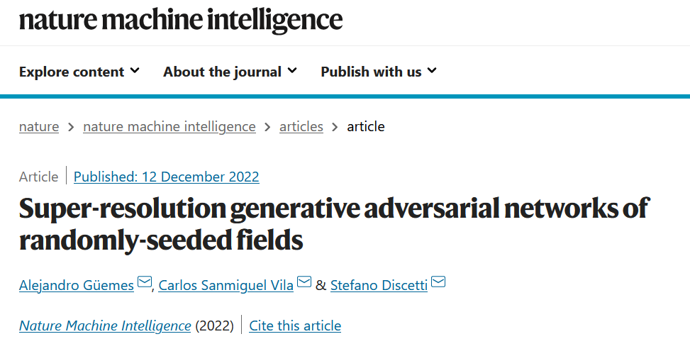 论文题目:Super-resolution generative adversarial networks of randomly-seeded fields 论文来源:Nature Machine Intelligence 论文链接:https://www.nature.com/articles/s42256-022-00572-7