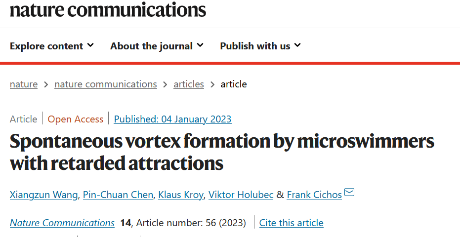 论文题目:Spontaneous vortex formation by microswimmers with retarded attractions 论文来源:Nature Communications 论文链接:https://www.nature.com/articles/s41467-022-35427-7