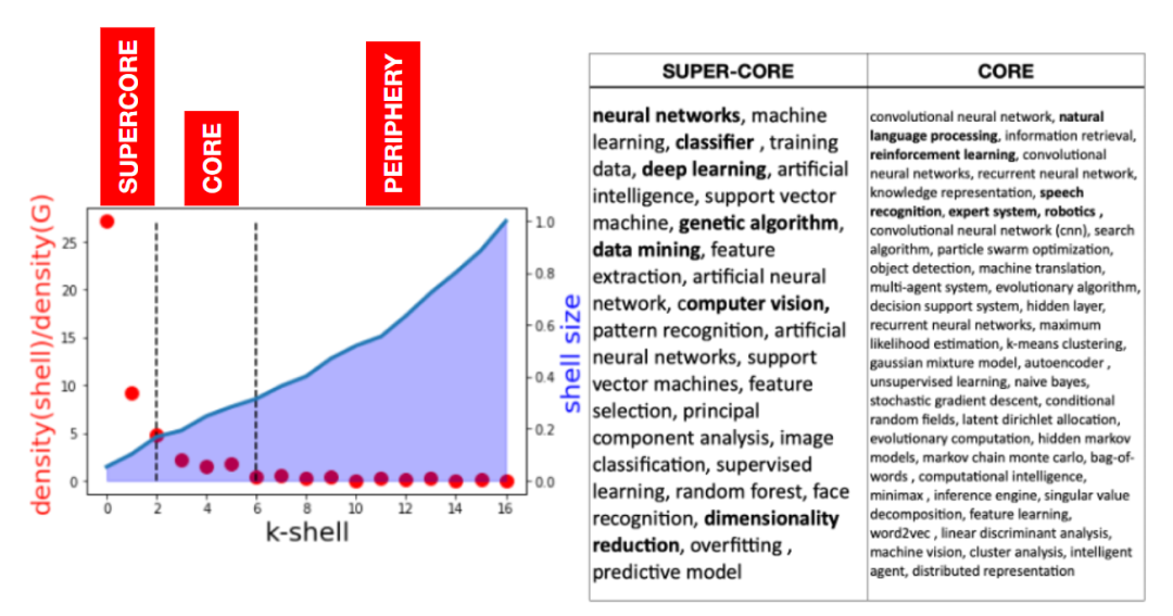 图1. 人工智能研究领域关键词网络的核心-边缘结构。