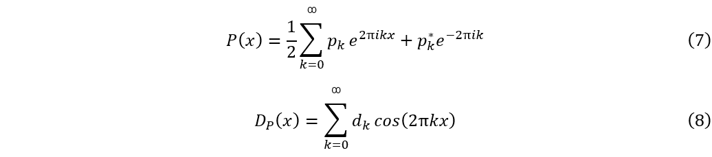 其中,因为概率是一个周期函数,所以很容易想到使用傅里叶级数作为他的表达式。可以将其写成: