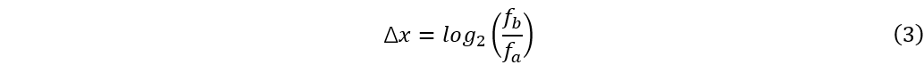 表示两个音之间的频率差距,fa和fb则是两个纯音的频率,且fb>fb,当时,两个音相差一个八度,也就是频率比为2。而其中不同颜色的线条代表处于不同频率区域的两个音的不协和度。Wc为不协和度最高时的音程。当这两个音的频率都很低时,处在低频的一个八度区间内得到的比较大,而高频的八度区间内比较小。