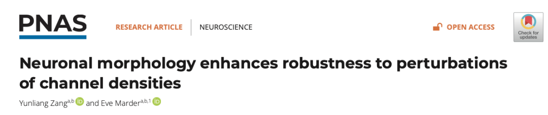 1. Zang, Y., and Marder, E. (2023). Neuronal morphology enhances robustness to perturbations of channel densities. Proc. Natl. Acad. Sci. U S A 120, e2219049120.