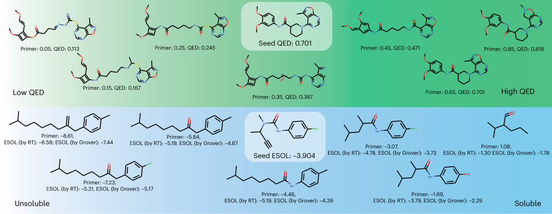 图2. 用 Regression Transformer 进行属性驱动和局部优化的分子设计