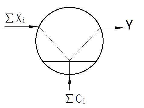 为了模拟人类意识中的控制与切换功能,我们提出一种新的模拟神经元:三元神经元。三元神经元基本定义为:有三个端口,一个输入端口,一个输出端口,一个控制端口,如图3-7所示。
