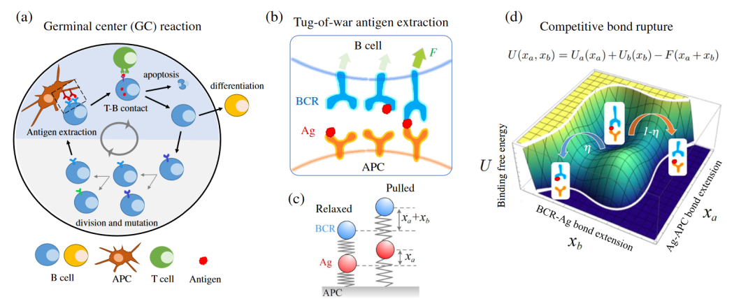 适应性免疫系统持续地重塑其淋巴细胞库,以便更好地防御未来的病原体。它提高动态抗原识别的能力,依赖于体细胞突变,和表达高亲和力抗原受体的 B 淋巴细胞的选择性扩增。然而,个体内的这种快速演化似乎效率不高,抗原结合亲和力的提高有一个适度的上限。 直到最近,实验才开始揭示演化中的 B 细胞使用主动力从呈递细胞中物理提取抗原,并且提取水平决定了克隆适应性。这些观察结果挑战了现有的观点,即受体-抗原结合的平衡常数决定了B细胞克隆的选择优势。