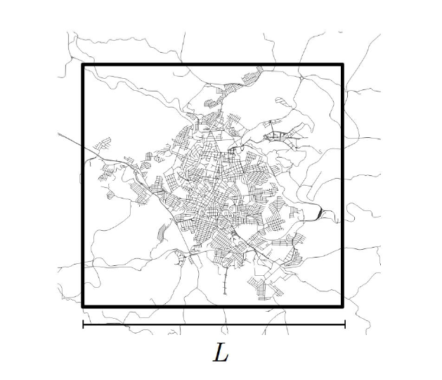 图3:拉夫拉斯市(Lavras,巴西)及其周边地区A,由一个边长为L的正方形包围。