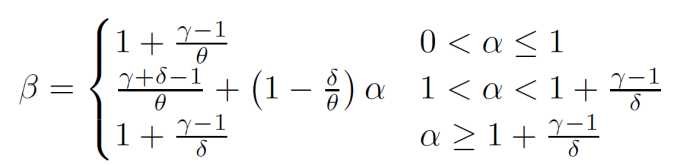 ,当出现极端值N << σ才会出现超线性标度因子,否则β=1。这个模型的结果至少有两个启示。首先,不断增加的超线性标度和规模收益率,可能只是一个伪命题,因为它可以从独立随机变量的选择过程中发生。其次,它允许线性和超线性不同结果的出现,取决于城市的规模和工人生产力分布的方差之间的关系。小城市(N << σ)将表现出超线性标度因子,而大城市(N >> σ)则出现线性特征。