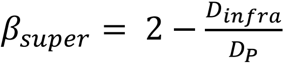 ,这表明个体间的平均距离随着城市规模的增大而减小。换句话说,正如实证研究表明的那样,大城市的人口密度比小城市要大。于是,可以估计出βsuper=7/6,βsup=5/6,与经验值相近。