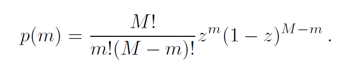 把M看作是某项社会经济活动所需的可能因素的数量。例如,如果Y是一个城市的专利总数,M可以是一个人开发专利所需的不同技能的数量。也就是说,M是对有关现象的 “复杂性”(复杂度、难度等)的一种度量。假设这些因素中的每一个都是由相应的城市提供的,概率为z。那么,如果这些因素是独立的,城市提供这M个因素中的m个的概率,即p(m),将遵循二项式分布: