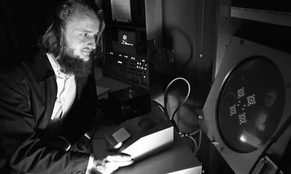 图5 康威正在运行生命游戏(1970年,Kelvin Brodie摄)