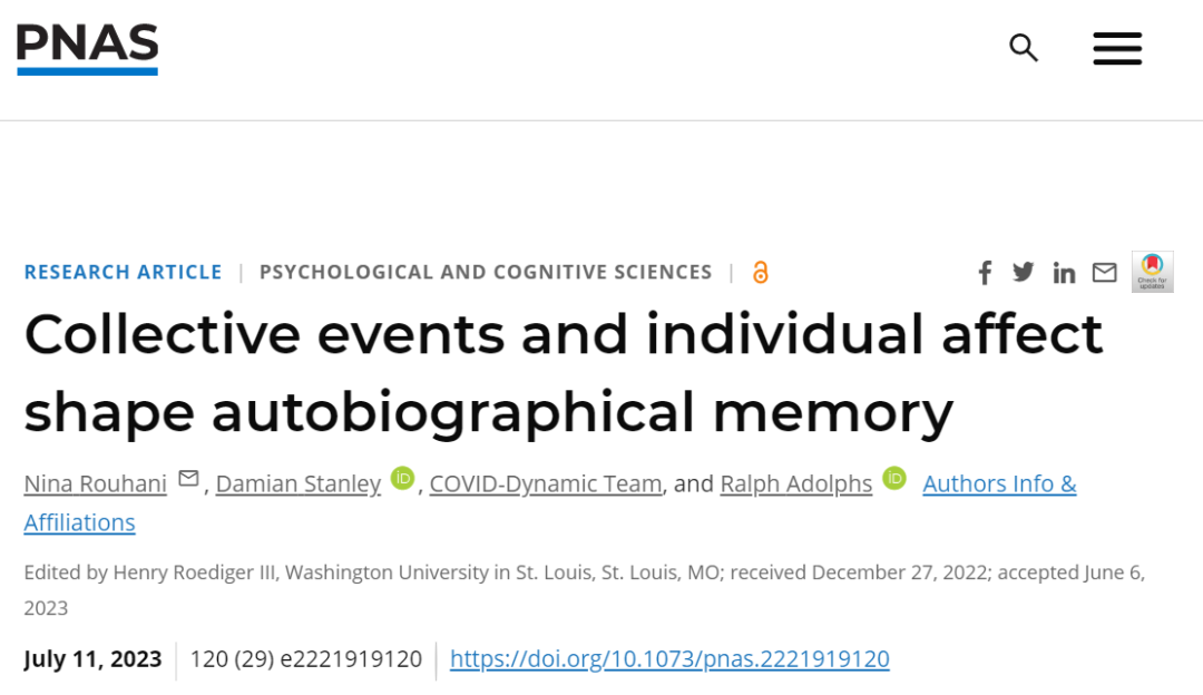 论文标题:Collective events and individual affect shape autobiographical memory