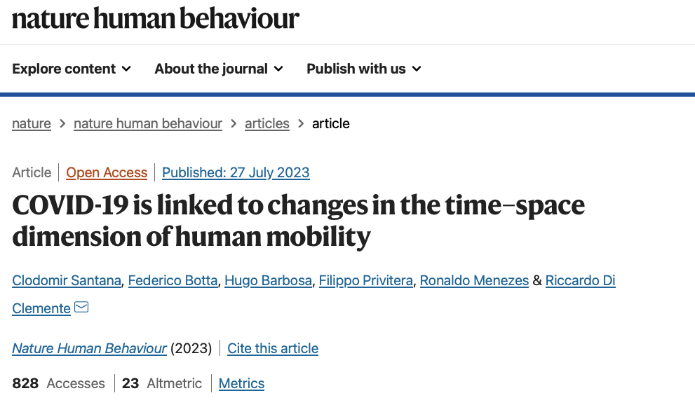 论文题目:COVID-19 is linked to changes in the time–space dimension of human mobility