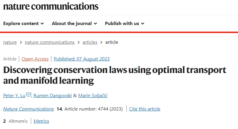 论文标题:Discovering conservation laws using optimal transport and manifold learning 论文来源:Nature Communications