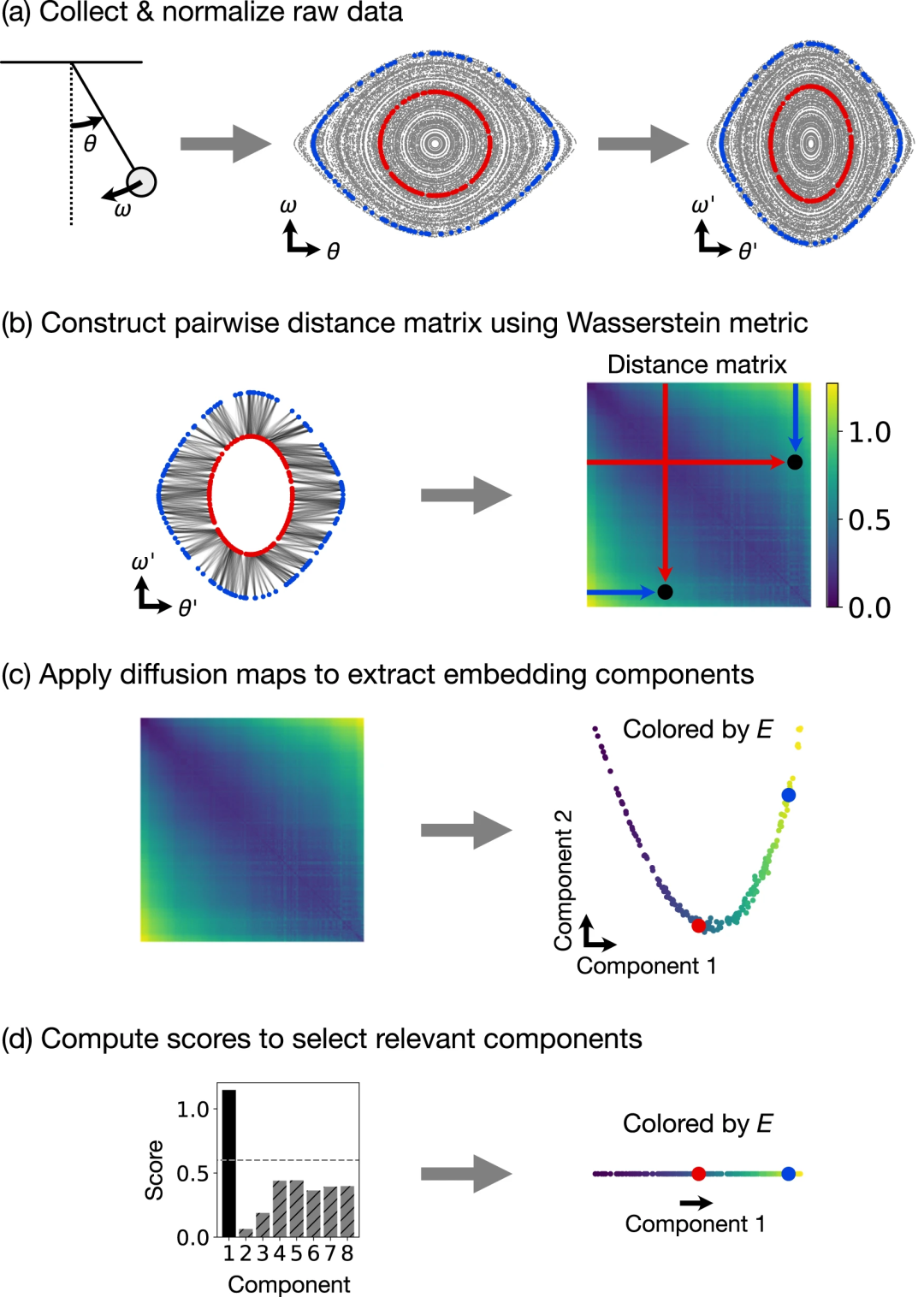 经验证,这种方法既稳健又可解释,不需要明确的系统模型,也不需要精确的时间信息,同时也证明对测量轨迹中的噪声、以部分观测到的相空间为形式的缺失信息以及近似守恒律的鲁棒性,优于之前基于深度学习的直接拟合方法,同时速度快了一个数量级。