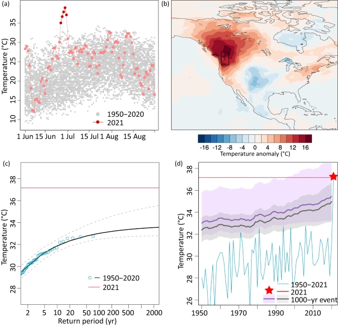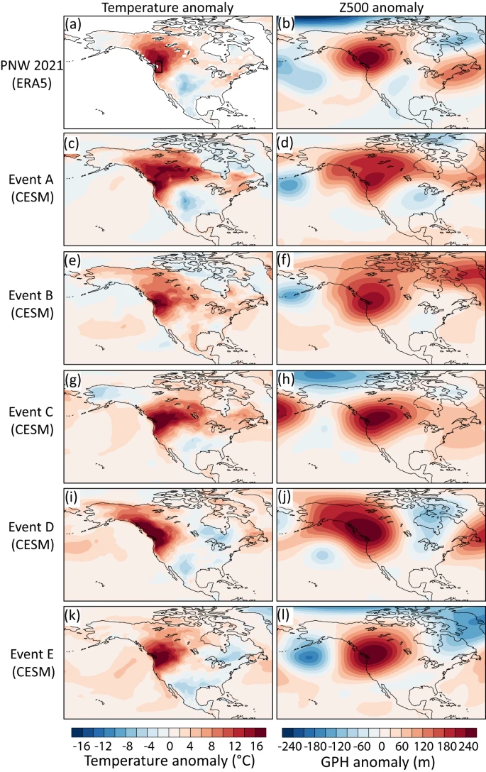 近期的温度极端事件已经打破先前的观测记录,达到了此前难以想象的强度。是否可以基于事件前可用的气候模型信息,预见到类似于2021年太平洋西北地区热浪这样前所未有的极端事件呢?科学界是否能够根据当前一代气候模型量化其潜在强度呢?
