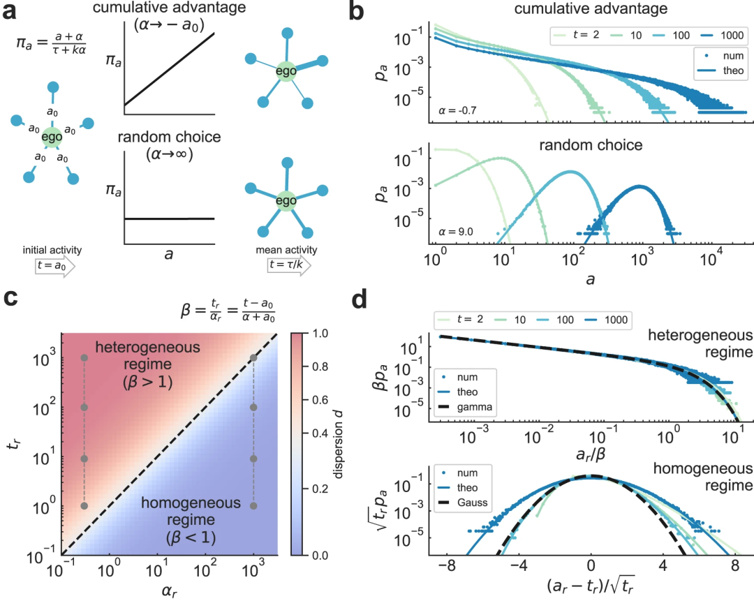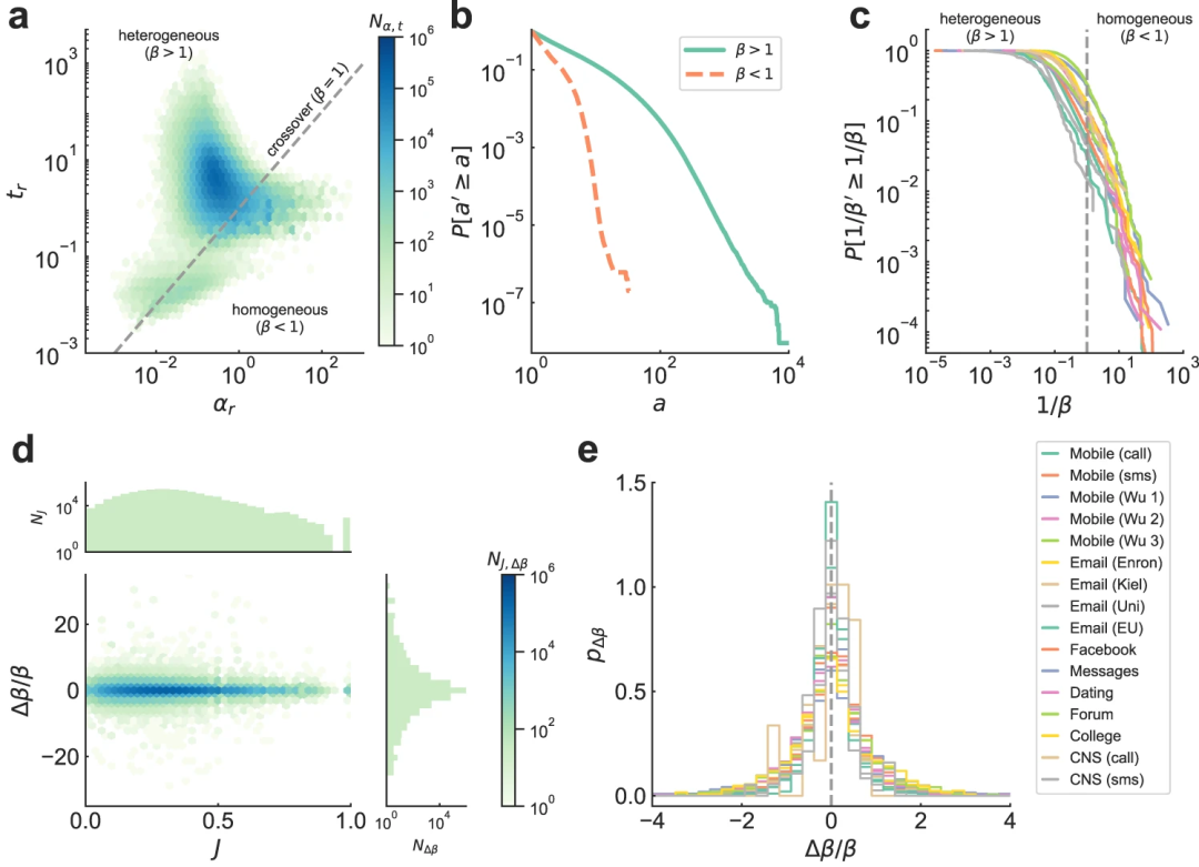 在网络演化模型的帮助下,文章将异质性的数量归因于累积优势机制,反过来,同质性又与随机选择改变者进行交流有关,两种关系强化机制的平衡决定了关系强度的多样性。这种平衡通过一个单一的偏好性参数来实现,该参数可与每个个体的数据进行拟合,拟合值在不同数据集中的分布非常相似,这表明在性质迥异的渠道中存在着普遍的交流模式。