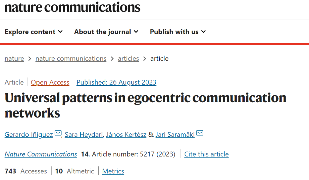 论文标题:Universal patterns in egocentric communication networks