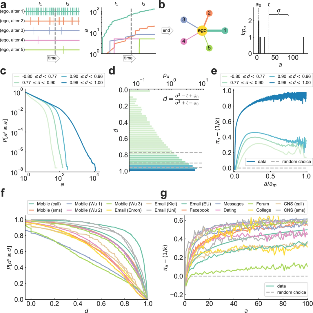 文章通过多个数据集研究了数百万人在数月至数年间互动的以个体为中心的网络中的关联强度,利用从数据中的互动记录重建的社交网络,作者测量了大量以自我为中心的网络中连接强度的分布,重点研究这种分布在个体间的变化。作者利用观察结果构建了一个以个体为中心的网络增长的最小、可分析的模型,该模型将连接强度的异质性及其个体差异性归因于相互竞争的连接强化机制之间的平衡。