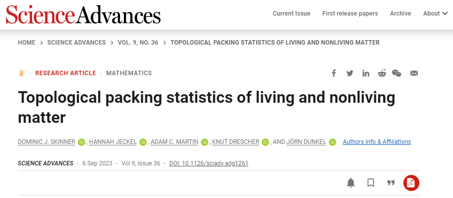 Sci. Adv. 速递:生物和非生物物质的拓扑堆积统计