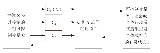 拟受控实验和受控实验的不同只在于,前者的可控制变量集C中,某些变量包含主体,根据受控实验结构(见图1—2),我们可以得到拟受控实验的结构(见图4—4)。图4—4和图1—2的差别,除了在于Y代表社会或个体行动及其后果,以及个体真实和社会真实中某种心灵状态外,还涉及C集合必须分为包含主体的可控制变量C1(X)集合,以及不包含主体的可控制变量C2、C3集合。表面上看,拟受控实验很接近受控实验,其只是将C集合分成两类而已。然而,正是这一差别构成它们真实性基础的巨大不同。因为真实性取决于控制过程的结构及其可重复性,一旦控制变量包含主体,无论控制过程的实现还是其普遍可重复就大相径庭了!
