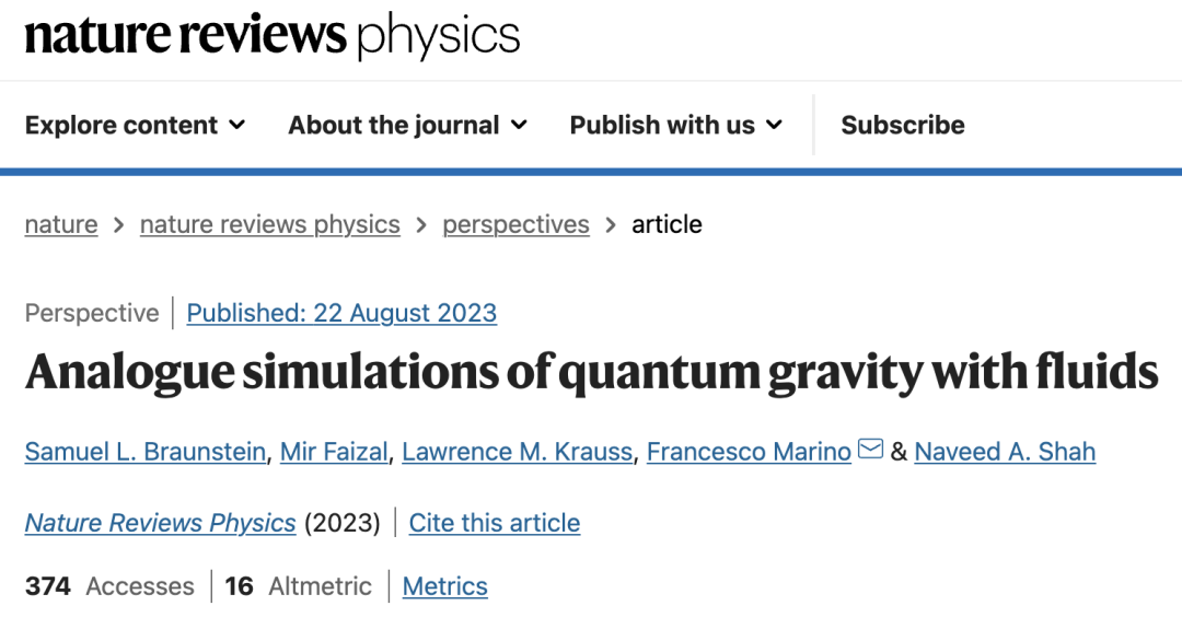 论文题目: Analogue simulations of quantum gravity with fluids 论文地址: https://www.nature.com/articles/s42254-023-00630-y