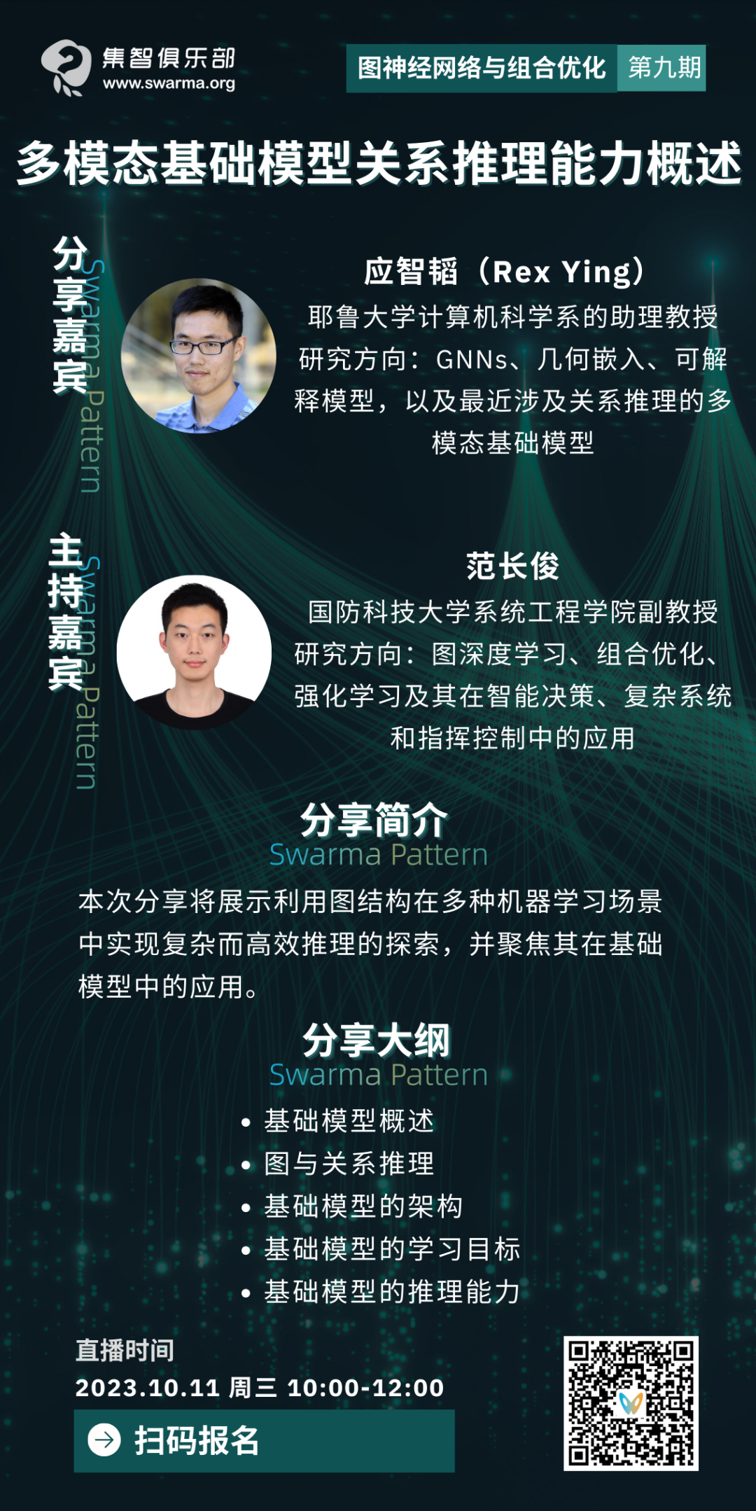 应智韬(Rex Ying),耶鲁大学计算机科学系的助理教授。研究重点包括图神经网络算法、几何嵌入、可解释模型,以及最近涉及关系推理的多模态基础模型。Rex是许多广泛使用的GNN算法的作者,如GraphSAGE,PinSAGE和GNNExplainer。此外,Rex还致力于图形学习在物理模拟、社交网络、知识图谱、神经科学和生物技术中的各种应用。Rex在Pinterest开发了第一个十亿规模的图嵌入服务,在亚马逊开发了基于图的异常检测算法。