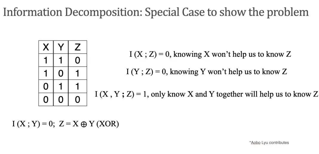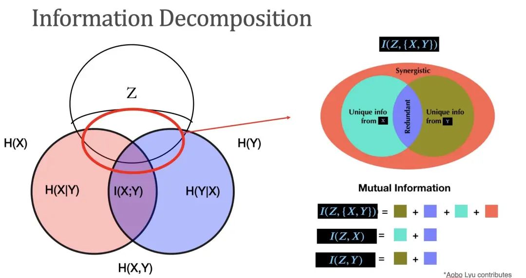 Varley 在他的博士论文里,也做了一个比方,把只研究两者之间的关系理解为文学作品《平面国》的二维世界小人去试图发现规律。此处吕奥博同学所提供的另一张图能够很好的进行可视化(图5)。于是一种信息论的拓展框架——信息分解被提了出来。