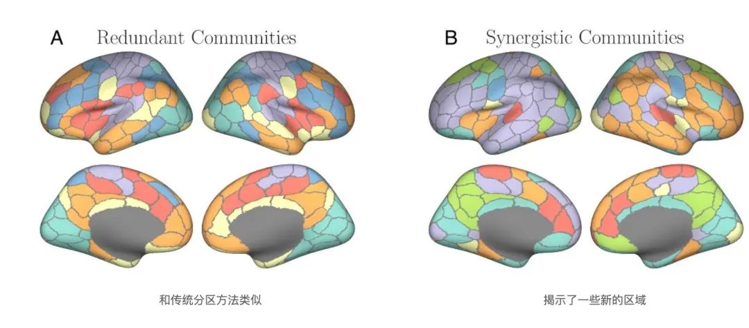 图10. 左图为大脑的高冗余区域,右图为大脑的高协同区域
