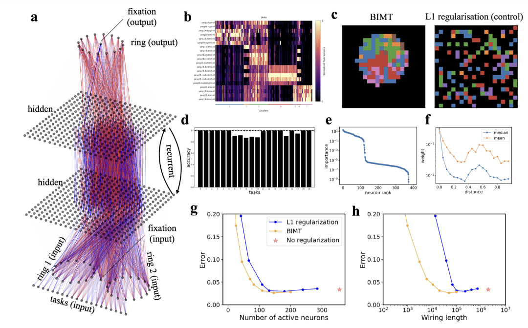 此外,与标准L1或无正则化设置相比,该模型通过最优地平衡任务性能和网络稀疏性表现出卓越的性能。除了在RNN中实现类似于大脑的组织,这些研究结果还表明,BIMT 在神经形态计算和提高神经网络架构可解释性方面具有潜力。